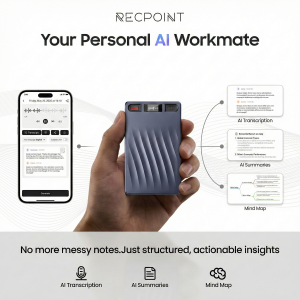 RECPOINT is a technology company dedicated to enhancing individual and organizational productivity through AI hardware. The company holds the conviction that technology should seamlessly integrate into workflows, serving as a partner that augments-rather than replaces-human intelligence. RECPOINT NOTE is the inaugural flagship product of this vision.