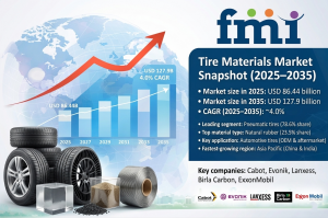 NEWARK, DE, UNITED STATES, April 1, 2026 /EINPresswire.com/ -- The global tire materials market is valued at USD 86.44 billion in 2025 and is projected to reach USD 127.9 billion by 2035, expanding at a CAGR of 4.0% during the forecast period. Growth is driven by increasing vehicle parc, rising automotive production, and the growing shift toward sustainable and high-performance tire materials.